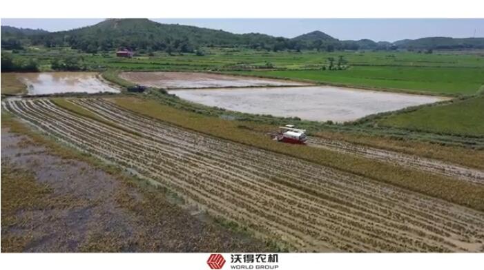 沃得锐龙灾区抢收水淹稻