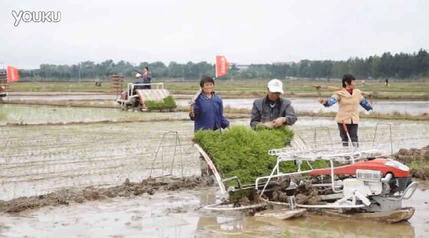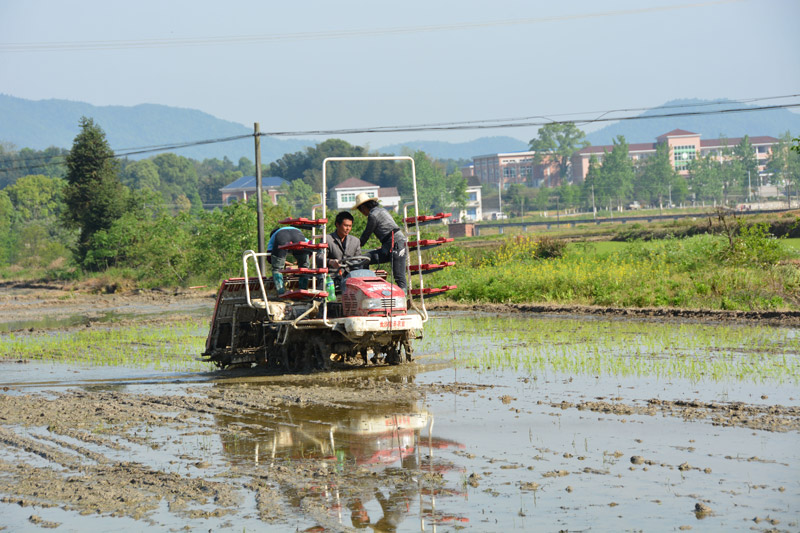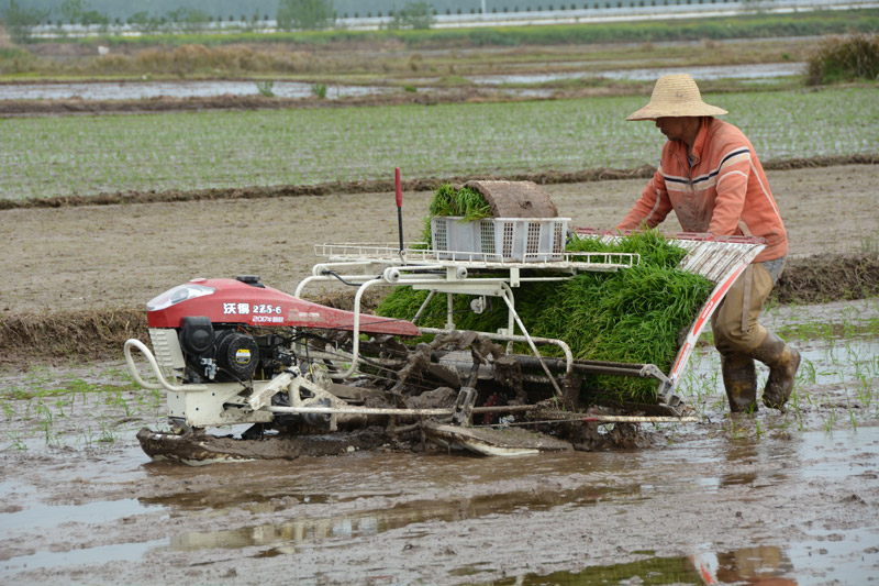 乘坐式插秧机 侧深施肥平地轮 田间作业